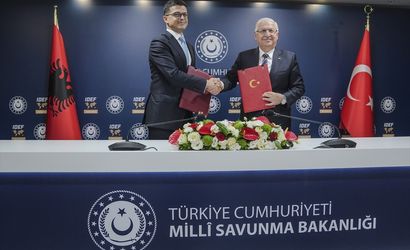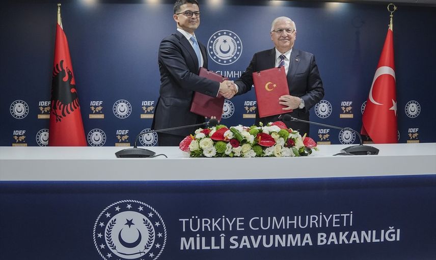 Anadolu Ajansının (AA) "Global İletişim Ortağı” olduğu 17. Uluslararası Savunma Sanayii Fuarı (IDEF 2025), Milli Savunma Bakanlığının ev sahipliğinde, Cumhurbaşkanlığı Savunma Sanayii Başkanlığının desteğiyle, Türk Silahlı Kuvvetlerini Güçlendirme Vakfının (TSKGV) yönetim ve sorumluluğunda ve KFA Fuarcılık AŞ’nin organizatörlüğünde İstanbul Fuar Merkezi'nde ikinci gününde (İFM) devam ediyor. Milli Savunma Bakanı Yaşar Güler (sağda) ile Arnavutluk Savunma Bakanı Pirro Vengu (solda), "Türkiye Cumhuriyeti Hükümeti ile Arnavutluk Cumhuriyeti Bakanlar Kurulu arasında imzalanan Nakdi Yardım Uygulama Protokolüne Dair 1 Numaralı Değişiklik Protokolü" için düzenlenen imza törenine katıldı.