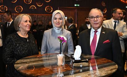 Cezayir'in Ankara Büyükelçiliği tarafından Milli Gün vesilesiyle Ankara'da bir otelde düzenlenen resepsiyona Aile ve Sosyal Hizmetler Bakanı Mahinur Özdemir Göktaş (ortada), Cezayir'in Ankara Büyükelçisi Amar Belani (sağ), Ankara'daki yabancı misyon temsilcileri ve çok sayıda davetli katıldı.