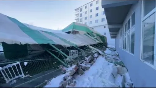 Iğdır’ın Tuzluca ilçesinde, yaklaşık bir yıldır düğün salonu olarak kullanılan halı saha, yoğun kar yağışının ardından çöktü; içeride kimsenin olmaması muhtemel faciayı önledi.