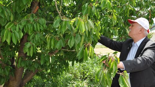 TZOB Genel Başkanı Şemsi Bayraktar, Kütahya'da çiftçilerle buluşarak zirai dondan etkilenen kiraz bahçelerini inceledi.