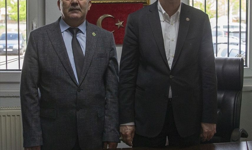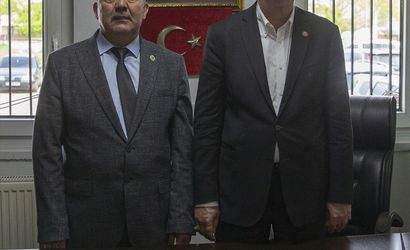 Bolu Ziraat Odasını ziyaret eden Türkiye Ziraat Odaları Birliği (TZOB) Genel Başkanı Şemsi Bayraktar (solda), kentteki ziraat odaları temsilcileri tarafından karşılandı.