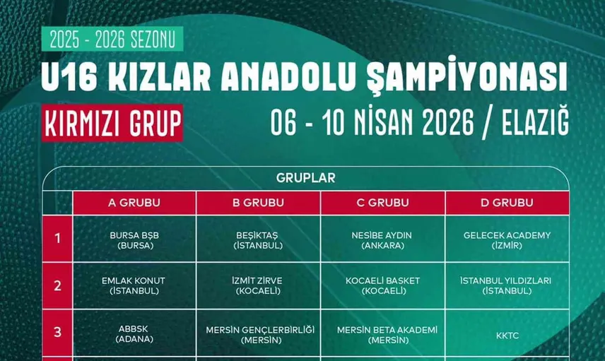 Türkiye Basketbol Federasyonu 2025-2026 sezonu faaliyet programında yer alan U16 Kızlar Anadolu Şampiyonası, 6-10 Nisan 2026 tarihleri arasında Elazığ'da gerçekleştirilecek. Organizasyon, genç sporcular için hem rekabet hem de gelişim açısından önemli bir sahne olacak.