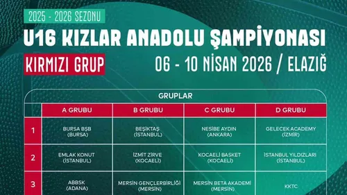 U16 Kızlar Anadolu Şampiyonası 6-10 Nisan 2026 tarihlerinde Elazığ'da düzenlenecek; 16 takım A, B, C ve D gruplarında mücadele edecek.