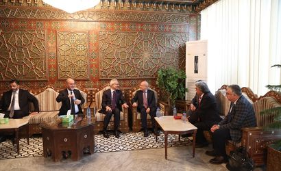 Ulaştırma ve Altyapı Bakanı Abdulkadir Uraloğlu (solda), Şam'daki resmi temasları kapsamında Suriye Bayındırlık ve İskan Bakanı Mustafa Abdulrezzak (sağda) ile bir araya geldi.