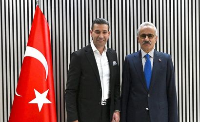 Ulaştırma ve Altyapı Bakanı Abdulkadir Uraloğlu (sağda), Türkiye Boks Federasyonu Başkanı Suat Hekimoğlu'nu (solda) ziyaret etti.