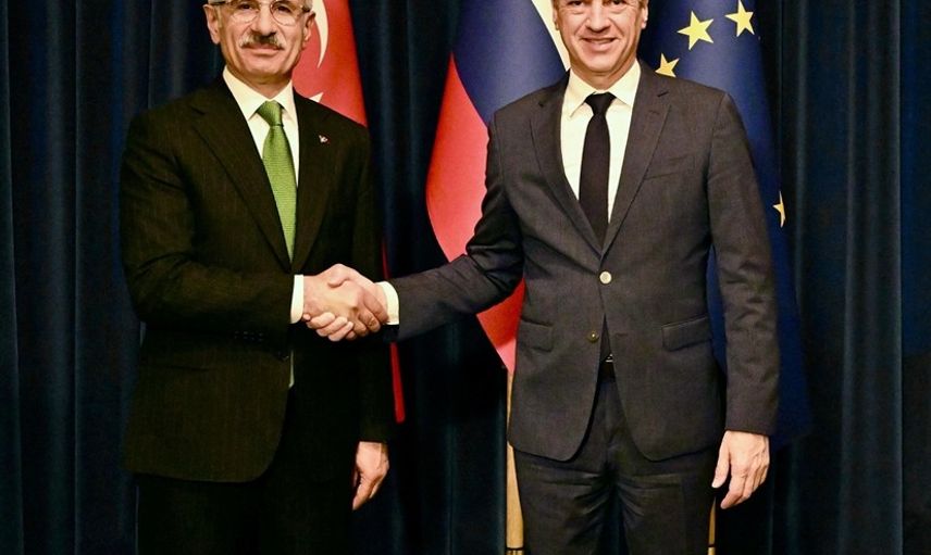 Ulaştırma ve Altyapı Bakanı Abdulkadir Uraloğlu (solda), Slovenya'daki temasları kapsamında ülkenin başkenti Lübliyana'da, Slovenya Başbakanı Robert Golob (sağda) ile görüştü.
