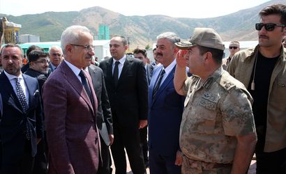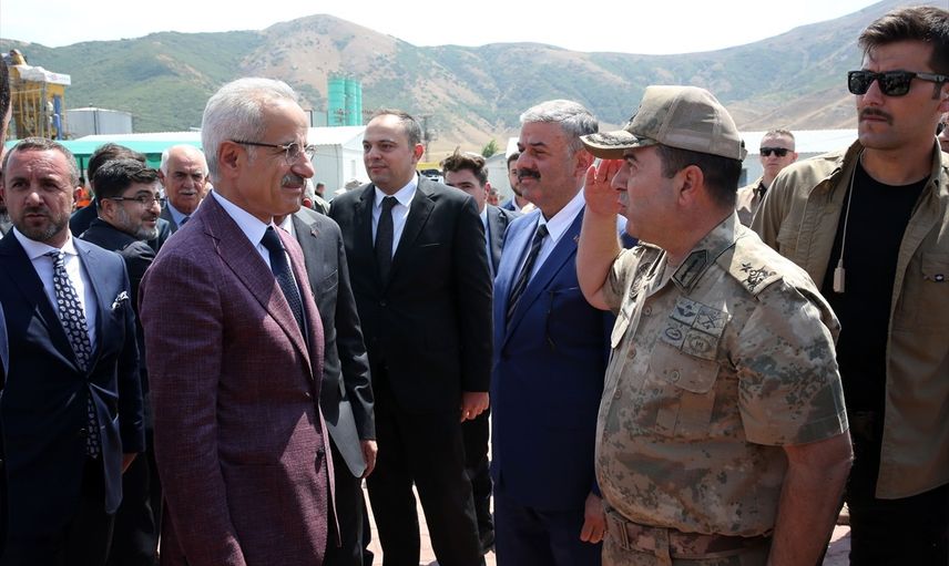 Ulaştırma ve Altyapı Bakanı Abdulkadir Uraloğlu (solda), Bitlis'in Tatvan ilçesinde çevre yolu şantiyesini ziyaret etti.
