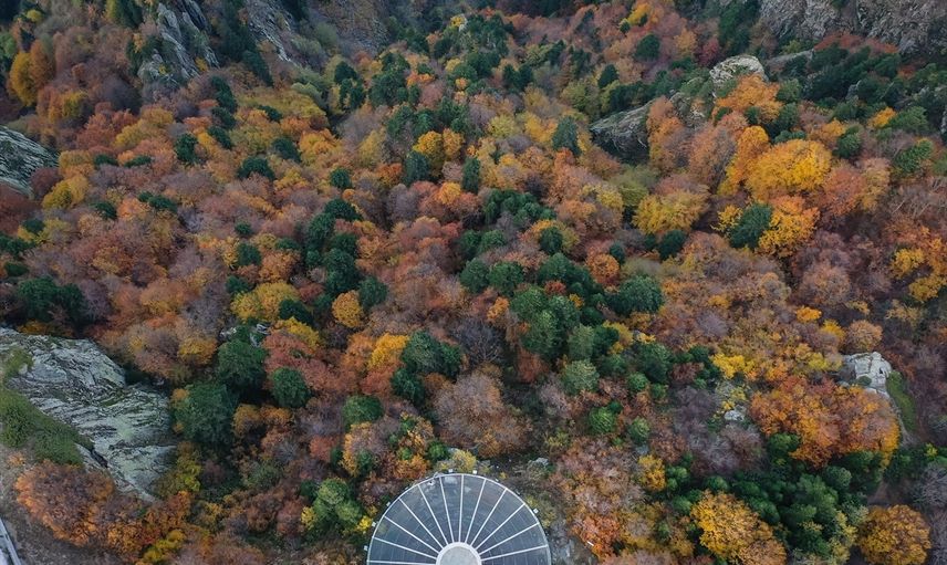 Türkiye'nin kayak ve kış turizminin önemli merkezlerinden Uludağ'ın ormanlarında, yeşil, sarı, kahverengi ve kırmızının farklı tonlarıyla sonbahar renkleri havadan görüntülendi.