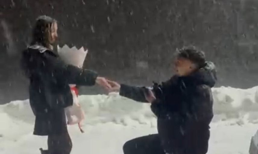 Mikrofon uzatıldığında Elif duygularını, "Çok mutluyum. Karlar altında evlilik teklifi almak hayalimdi" sözleriyle dile getirdi.