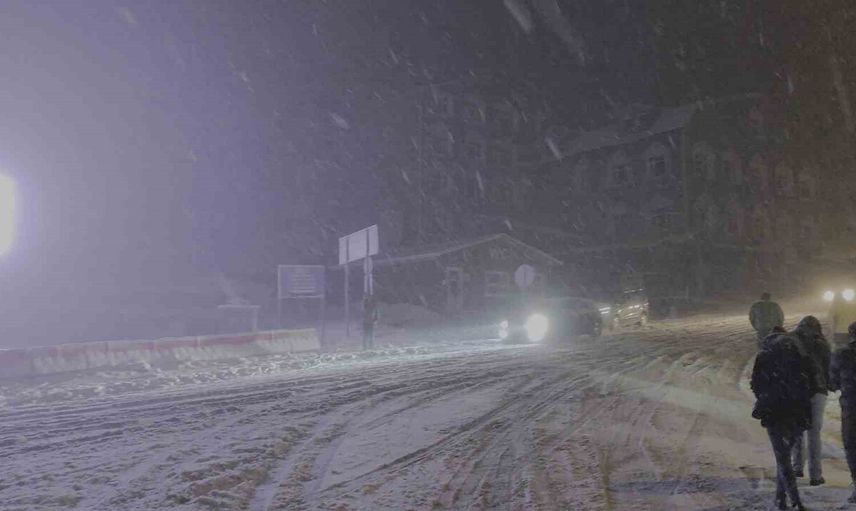 Uludağ'da akşam saatlerinde yoğun kar yağışı etkisini artırdı