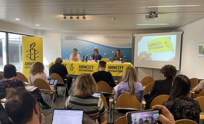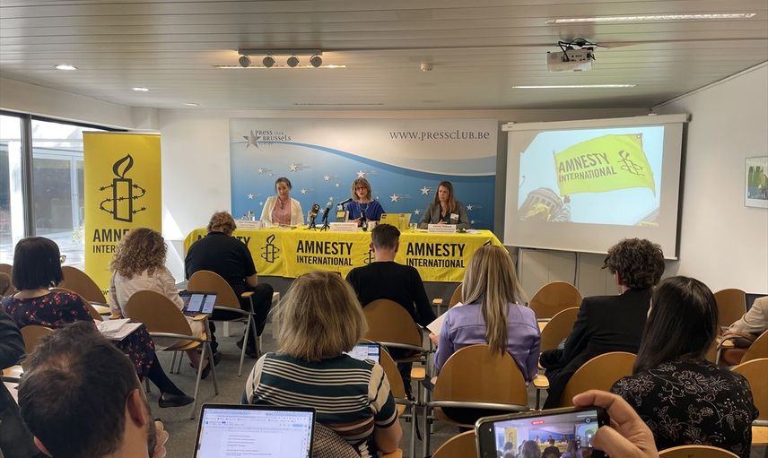 Uluslararası Af Örgütü (Amnesty International) Genel Sekreteri Agnes Callamard, örgütün "Dünya İnsan Hakları Durumu Raporu"nun tanıtımı için Brüksel'deki Basın Kulübü'nde düzenlenen toplantıda konuştu.