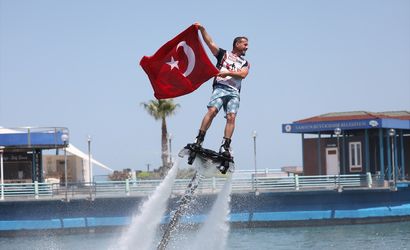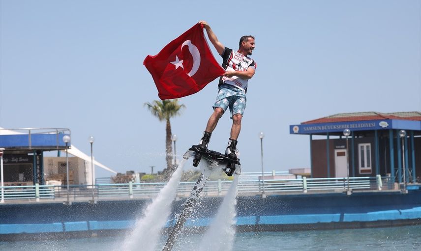 Samsun'da düzenlenen 'Uluslararası Su Sporları Festivali' başladı. Festival kapsamında flyboard gösterisi gerçekleştirildi.