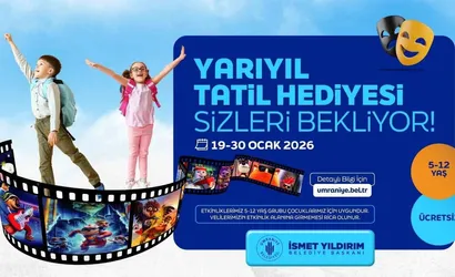 Ümraniye Belediyesi, 5-12 yaş arası çocuklara yönelik hazırladığı kültür ve sanat dolu programla yarıyıl tatiline renk katıyor. 19-30 Ocak 2026 tarihleri arasında gerçekleştirilecek etkinliklerde minik katılımcılar film gösterimleri, tiyatro oyunları ve çeşitli sürprizlerle dolu bir programa davet ediliyor.