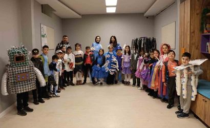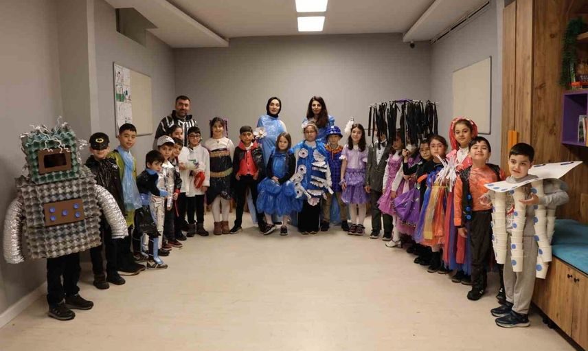Ümraniye Belediyesi İklim Değişikliği ve Sıfır Atık Müdürlüğü tarafından düzenlenen etkinlikte öğrenciler, biriktirdikleri atık malzemelerle tasarladıkları kıyafetleri sahneledi.