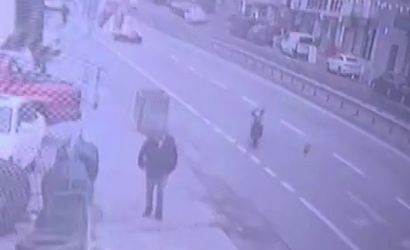 Ümraniye Alemdağ Caddesi'nde dün kayıt altına alınan olayda, sürücüsüz şekilde ilerleyen bir motosiklet kaldırıma çarparak devrildi. Olay anında kaldırımda yürüyen bir yaya, motosikletin çarpmasından son anda kurtuldu.