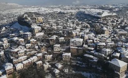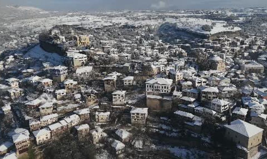 Karla kaplı tarihi yapılar dronla görüntülendi, bu çekimler kentin kış dönemi dokusunu ve mimari ayrıntılarını gözler önüne serdi.