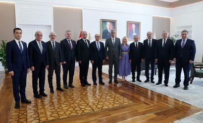 Üniversite Hastaneleri Birliği (ÜHB) Yönetim Kurulu üyeleri, Sağlık Bakanı Kemal Memişoğlu'nu (sağ 6) makamında ziyaret etti.