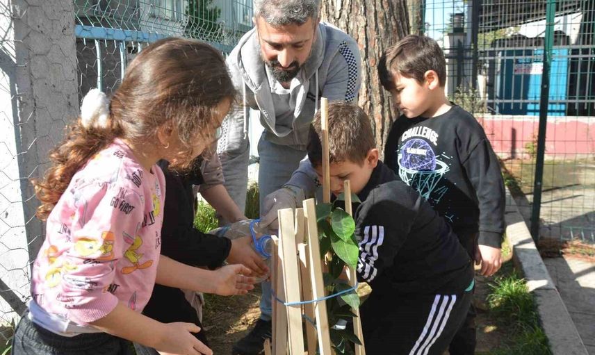 Etkinlik sırasında çocuklar, öğretmenleri ve velilerin eşliğinde diktikleri fidanları suladı. Uygulamalı bu çalışma, çocuklara doğa sevgisini aşılamayı ve çevre bilincini erken yaşta pekiştirmeyi amaçlıyor.