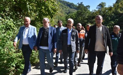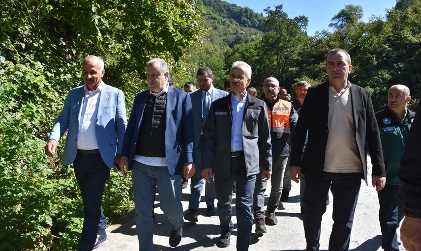 Ulaştırma ve Altyapı Bakanı Abdulkadir Uraloğlu ile Gençlik ve Spor Bakanı Osman Aşkın Bak, Artvin'in Borçka ilçesinde selden etkilenen bölgelerde sürdürülen yol açma çalışmalarını inceledi.