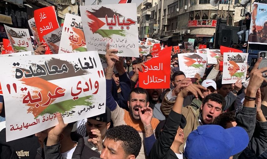 Ürdün'de İsrail'in Gazze Şeridi'nin kuzeyindeki soykırımını protesto etmek ve Ürdün ve İsrail arasında 1994'te imzalanan barış anlaşmasının iptal edilmesi talebiyle gösteri düzenlendi. Ulusal Direnişi Destekleme Forumu'nun çağrısıyla başkent Amman'daki Hüseyni Camisi önünde bir araya gelen yüzlerce kişi, camiden yaklaşık bir kilometre uzaklıktaki Nahil Meydanı'na yürüdü.
