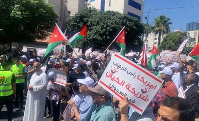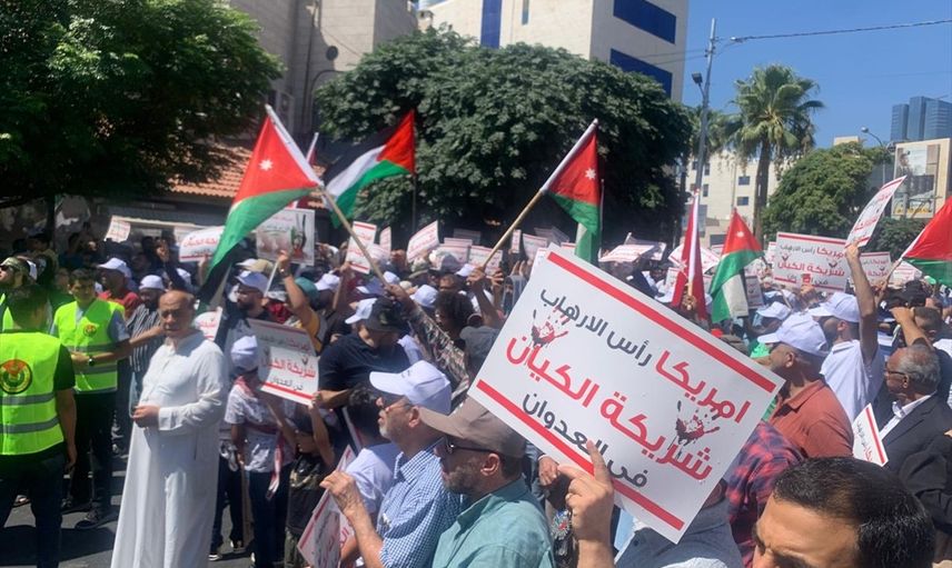 Ürdün'ün başkenti Amman'da, cuma namazının ardından yüzlerce kişi bir araya gelerek, İsrail'in Gazze Şeridi'ne yönelik 11 aydır süren saldırılarını ve ABD'nin bu konudaki tutumunu protesto etti.