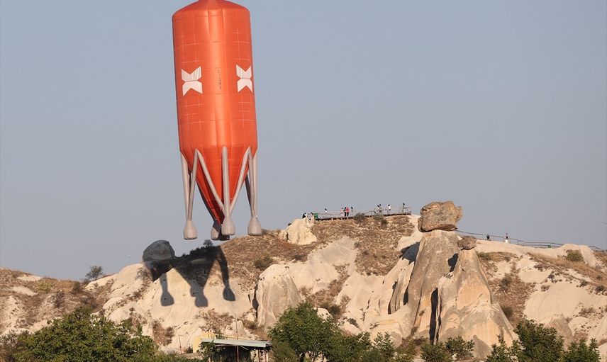 Hava koşullarının izin vermesi halinde, figürlü sıcak hava balonları hafta sonunda Göreme beldesinde peri bacalarıyla dolu vadilerde gösteri uçuşu yapmaya devam edecek.