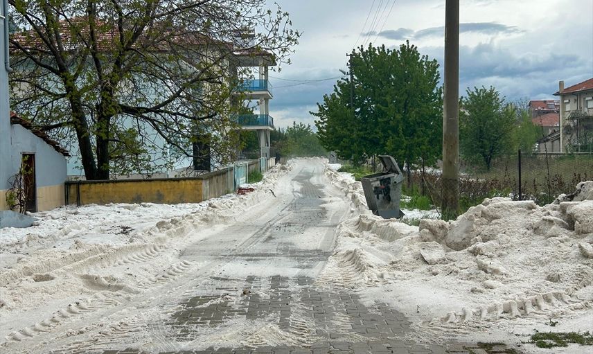 Uşak'ın Sivaslı ilçesinde sağanak ve dolu hayatı olumsuz etkiledi. Sağanağın ardından etkili olan doluyla birlikte tarlalar ve sokaklar beyaza büründü.