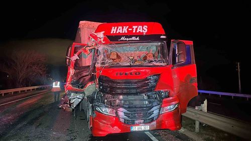 Uşak-İzmir Karayolu Ürün köyü yakınlarında iki tır çarpıştı; 1 sürücü hastaneye kaldırıldı, sağlık durumu iyi.