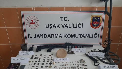 Uşak'ın Ulubey ilçesinde yapılan operasyonda tarihi eser niteliğindeki 117 obje ele geçirildi.