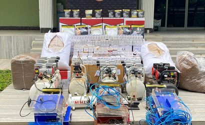 Aramada ayrıca, 6 bin 940'ı tütünle doldurulmuş makaron, 191 kilogram kaçak tütün, 4 sigara sarma makinesi ve 6 kompresör bulundu. Olayla ilgili olarak 2 şüpheli hakkında adli işlem başlatıldı.