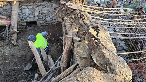 Uşak'ın Eşme ilçesindeki bir ağılın çökmesi sonucu 3 koyun öldü, diğer koyunlar kurtarıldı.