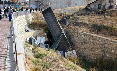 Uşak'ta, Dikilitaş Mahallesi'nde sürücüsünün tamir etmeye çalıştığı sırada hareket eden tır Değirmen Deresi'ne düştü.