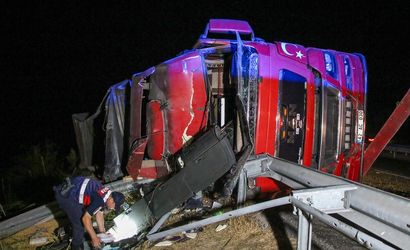 Uşak-İzmir kara yolunda gerçekleşen kazada, M.C. (40) yönetimindeki mısır yüklü 42 AC 030 plakalı tır, Yenişehir mevkiinde kontrolden çıkarak şarampole devrildi.
