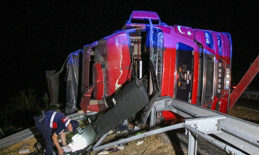 Uşak'ta devrilen mısır yüklü tırın sürücüsü yaralandı. Kaza yerine 112 Acil Sağlık, polis, jandarma ve itfaiye ekipleri sevk edildi.