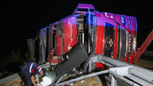 Uşak-İzmir yolunda devrilen mısır yüklü tırın sürücüsü yaralandı, sağlık durumu iyi.