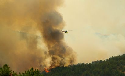 Uşak'ta çıkan orman yangınına havadan ve karadan müdahale edildi.