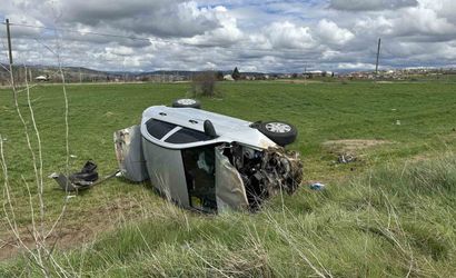 Uşak’ta Ortaköy yakınlarında otomobil tarlaya devrildi