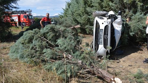 Uşak'ta Şarampole Devrilen Araçta Anne ve İkiz Bebekler Yaralandı