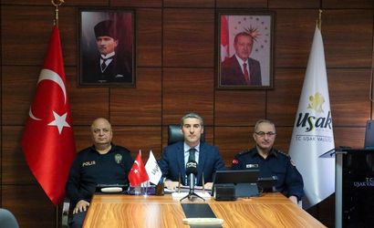 Uşak Valisi Naci Aktaş başkanlığında Uşak Valiliği Toplantı Salonu'nda Güvenlik ve Asayiş Değerlendirme Toplantısı düzenlendi. Toplantıya, İl Jandarma Komutanı Kıdemli Albay Fahri Semiz (sağda), İl Emniyet Müdürü Mehmet Ali Kolcu da (solda) katıldı.