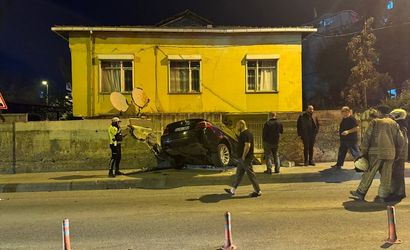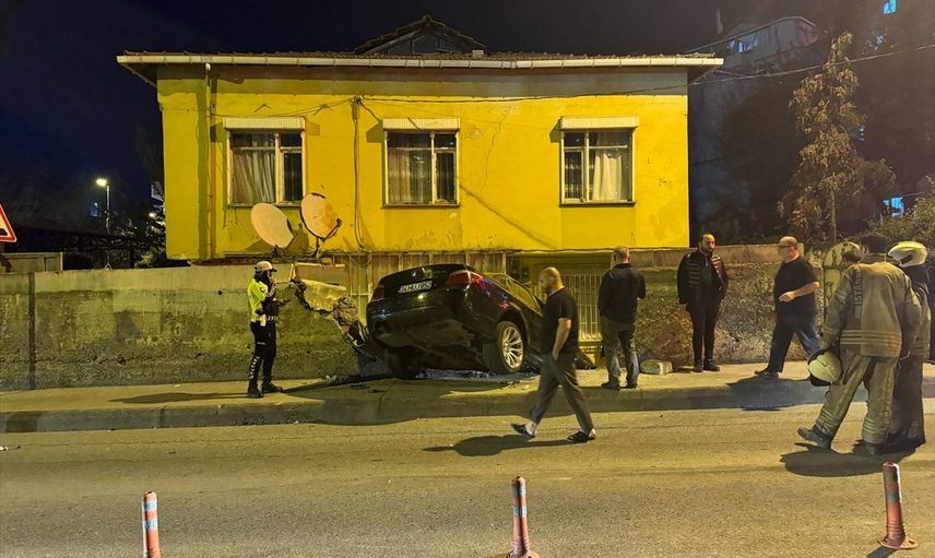 Üsküdar'da bir binanın bahçe duvarına çarpan otomobilin sürücüsü aracını bırakıp kaçtı.
