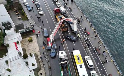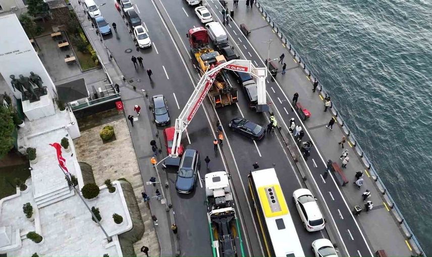 Üsküdar'da tır dorsesindeki ekskavatör tabelaya çarptı: 7 araçta maddi hasar