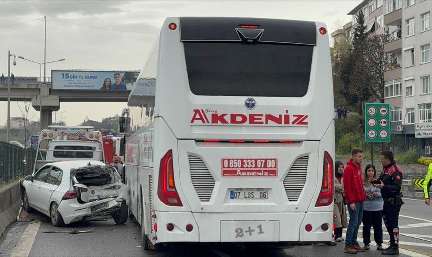 Bu esnada, aynı istikamette seyreden 34 GAT 030 plakalı otomobil, durduğu yerde bekleyen araca çarptı. Çarpmanın ardından, diğer şeride savrulan otomobile 07 LBS 06 plakalı yolcu otobüsü çarparak, aracı bariyerlere sürükledi.