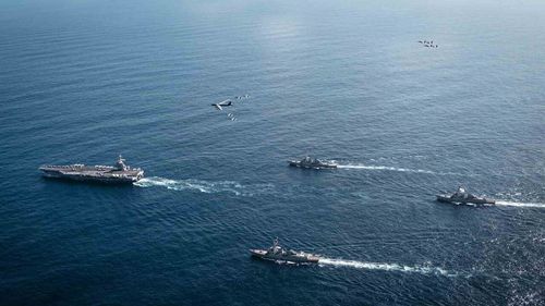 ABD donanması, USS Gerald R. Ford liderliğindeki taarruz filosunun 16 Kasım'da Anegada Geçidi'nden Karayip Denizi'ne ulaştığını ve Güney Mızrağı Operasyonu'na katılacağını açıkladı.