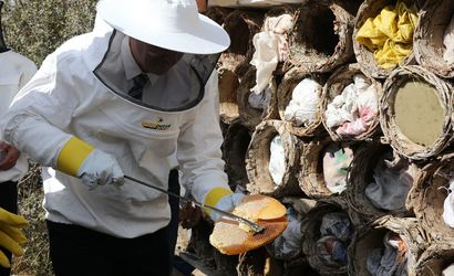 Bitlis Valisi Ahmet Karakaya (fotoğrafta), 2 bin 400 rakımlı Karçinbaşı bölgesinde karakovan balının hasadına katıldı.