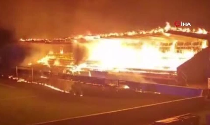 FC Haka’nın stadyumunda yangın: Tribün ve saha kısmen kullanılamaz hale geldi