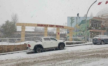 Van Başkale'de kar yağışı ilçe merkezini beyaza bürüdü