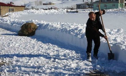 Mikail Çalışkan bu yılki yoğun kar yağışına dikkat çekerek, "Koyunlara ot vermek için alanı kardan temizliyorum. Bu sene kar yoğun bir şekilde yağdı. Biraz fazla eziyet çektik ama değdi. Günde 2 kez hayvanları dışarı çıkartıp yem veriyoruz. Zor olsa da bunu yapmak zorundayız" dedi.