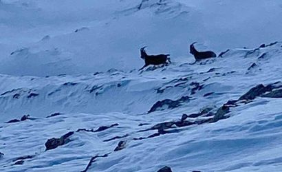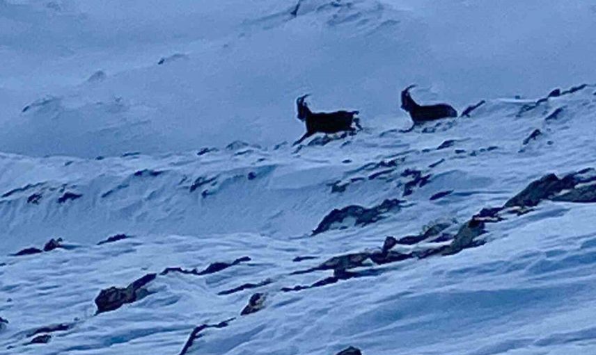 Bölgede etkili olan kar yağışı nedeniyle dağ keçilerinin yüksek kesimlerden daha aşağı rakımlara indiği gözlendi.