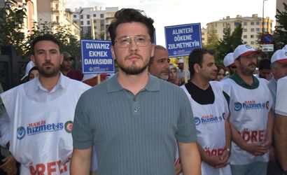 İpekyolu Belediyesi önünde devam eden eylemlere katılan HAK-İŞ İl Başkanı Fatih Akdeniz, işçilerin hukuk mücadelesinin sürdüğünü ifade ederek, "Dava süreçlerimiz olumlu sonuçlar vermeye başladı," dedi. Akdeniz, yaklaşık dört ay önce işten çıkarılan işçilerin ve ailelerinin mağduriyetine dikkat çekti.