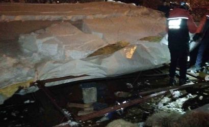 Van'ın Edremit ilçesinde etkili olan kar yağışı ve fırtına, Yeni Mahalle'de Kinyas Demirel'e ait ahırın çatısına binen kar ağırlığı nedeniyle çöktü.